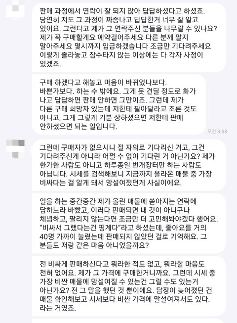 모르고 산 것도 아니고 금액 알고 연락해놓고 뭔 소리냐.