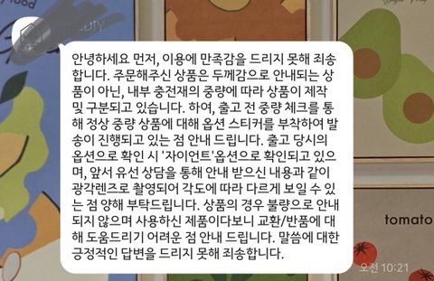 1. 구매 품목 : 자이언트 퀸사이즈 2. 금액 : 약 7만원*사이트 사진*납품 받은 제품*상담 내용