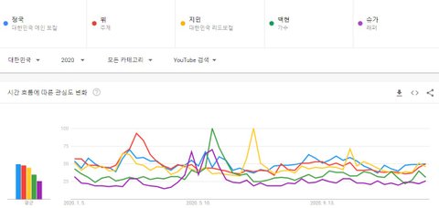 <역대 남자 아이돌 멤버 유튜브 개인 검색량 TOP5>