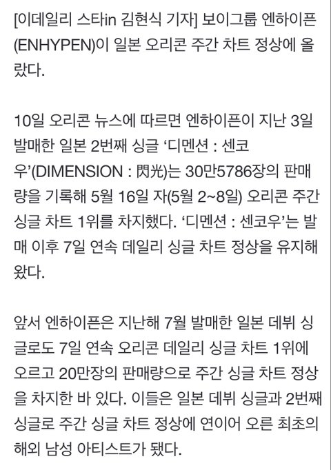 오리콘 주간 차트 연속으로 오른 최초 남돌이래