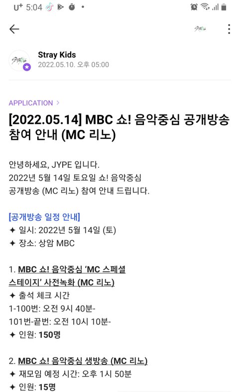 음악중심 방청객 신청(mc리노 보러 갈 사람)