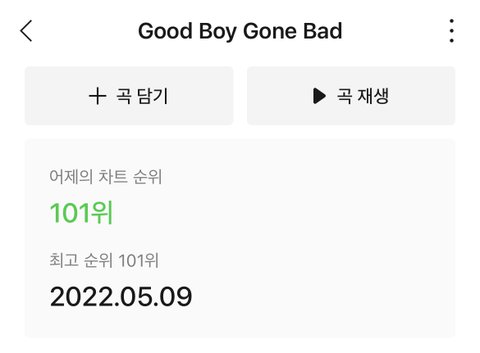 이번 신곡이 젤 아쉽 101위…