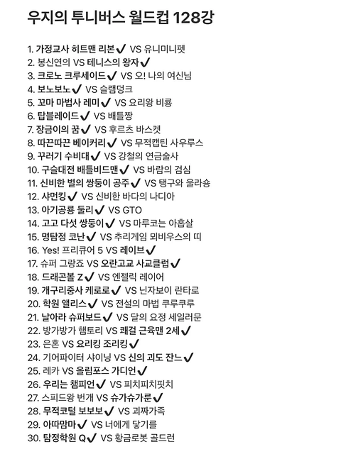우지의 투니버스 월드컵 128강ㅋㅋㅋㅋㅋ