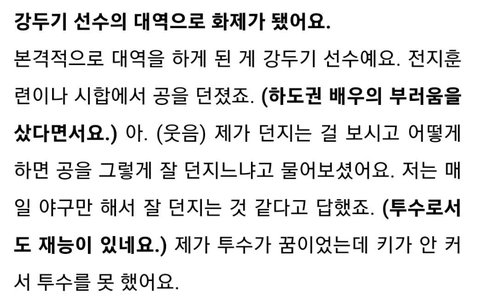 독립야구 뛰던 시절에 드라마 <스토브리그> 대역 출연 경력도 있는데,