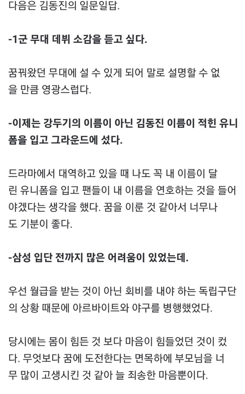 독립야구단에서 프로 지명 받아서 삼성라이온즈 입단-> 올 시즌 1군 데뷔