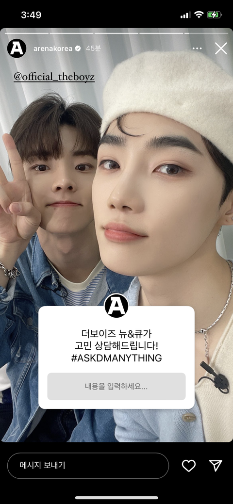 아레나 계정 스토리에서 질문 받고 있댕
