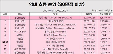 아직 초동 안끝났는데 역대 초동 순위 8위임