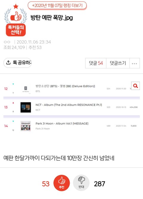 방탄은 항상 예판으로 까이는데 현실은 저때 1종으로 초동 200만장 넘게 찍음