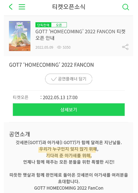 티켓 오픈 안내 멘트 보소
