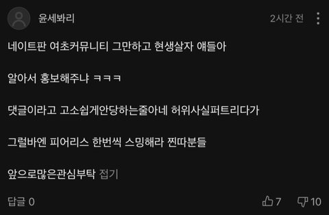 판에서 딴 돌들 패고 다니는거 찐이었나봄 콕 집어서 네이트판이라고 하네ㅋㅋㅋㅋ 저렇게 몰려다니면서 타돌 안 팰리가 없거든