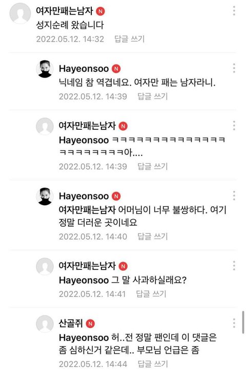 어머님이 너무 불쌍하다란 댓글로 하연수 욕하는 남자들 개많음 지능수준 ㅆㅂ 진짜 없어졌으면 좋겠음 여자만패는남자 ㅇㅈㄹ하더니 자기 엄마 언급 했더니 ㅂㄷㅂㄷ 어떻게든 꼬투리 잡으려고