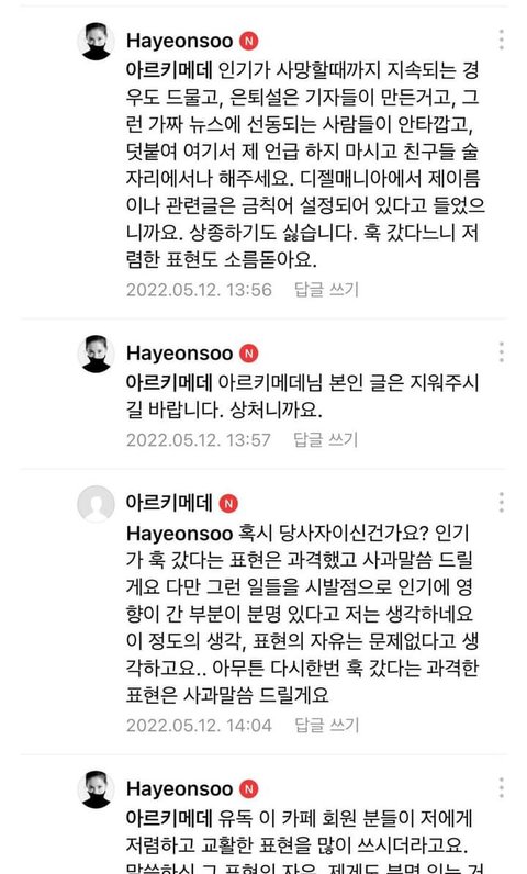 이거 디씨 펨베 같은 남초 사이트에서 피곤하게 산다고 까이던데 어이없음. 유아인이 하는 키배는 정의로운 키배고 하연수가 하는 키배는 피곤한 키배냐? 역겨운 성희롱 댓글 달았으면서 고소한다니까 개G랄. 여혐에 뇌가 절여져서 성희롱 댓글 지적한건데 페미라고 G랄G랄. 지들이 av배우로 진출한다느니 ㅅㄱ 가 크다느니 역겨운 성희롱 댓글 달고 낄낄 거리다 고소한다니까 부들부들. 하연수 꼭 고소해서 정의구현 했으면 좋겠음. 응원함.