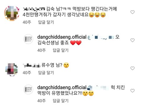 이 인스타를 보고 평소 당치땡을 알던 일반인 7명이 댓글을 남김