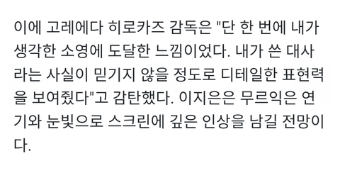 특히 그 장면이 감정과 그리고 본인의 여러 가지의 느낌들 전달하는 복합적인 장면이었는데