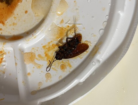 젓가락으로 들춰보니까 바퀴벌레였습니다.