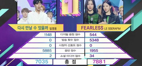 근데 팬분들 정말 어이 없고 허무할 거 같음. 돈 모아서 음반도 많이 사고 스밍도 열심히 하셨을텐데 도대체 뭔 기준인지도 모르겠는 방송점수가 0점. 도대체 이 0점은 무슨 뜻임??