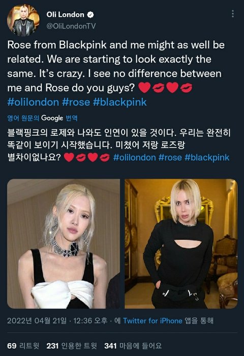 당신은 로제가 올리 런던를 닮았다고 생각하나요?