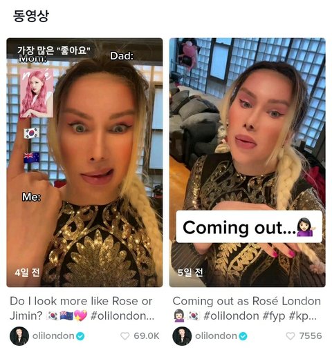 올리 런던은 지민을 따라하기 위해 15만 달러(약 1억 7천만원)을 들여 성형수술을 받았다고 밝혀 유명해진 인플루언서다.