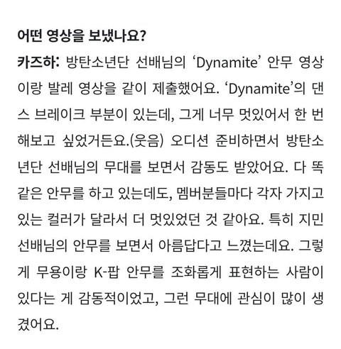 르세ㄹ핌 카즈ha님 인터뷰에 애들얘기