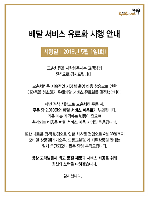 교촌이 시작하고 그 뒤로 배달비
