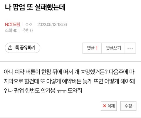 이 삭제된 댓글 머였는지 본사람? 나 못봐서 ㅠㅠ