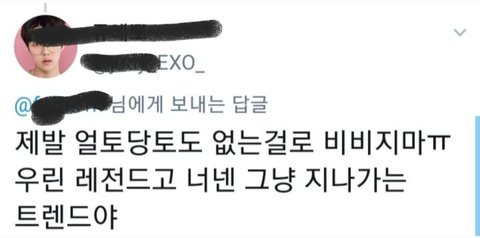 전성기때 빅뱅한테 따이고, 방탄한테 따인 그들만의 레전드. 으르렁 메가히트곡이라 하지만 실상은 다이너마이트보다도 성적 안나온 10대 한정 그들만의 메가히트곡