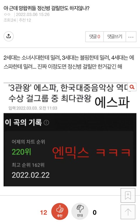 몰랐으면 알아가면 되는거지 저게 까일 정도는 아닌거같음 그리고 ㅁㄷ처럼 이런 사소한 실수 하나도 까달라고 쪼르르 바로 퍼온 쓰니도 별..
