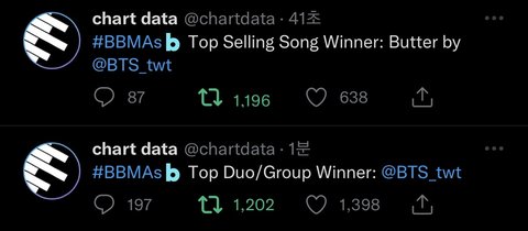 사전 시상식 틱톡으로 진행중인데 Top Selling Song Top Duo/Group 받았다,,!! 이따 오전 9시에 본식 때도 후보에 오른 부문 있으니 만관부!!