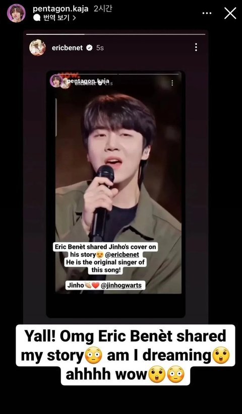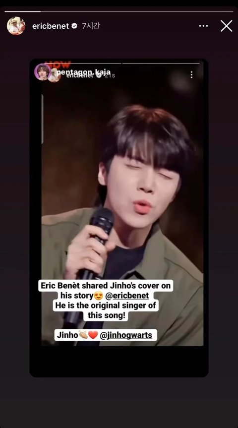 1. 에릭베넷이 ㄴㅇㅂ나우에 나온 펜타곤 진호를 녹화떠서 본인 인스타 스토리에 올림