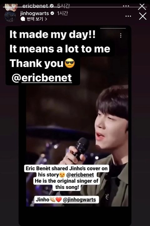 2. 진호 팬은 에릭베넷 스토리에 올라온 진호를 녹화떠서 자신의 스토리에 업로드