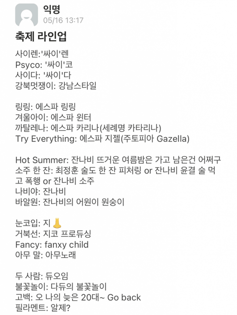 싸이, 에스파, 지코, 잔나비, 다듀 나온다는 얘기임