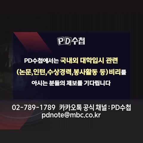 PD수첩에서는 국내외 대학입시 관련(논문,인턴,수상경력,봉사활동 등) 비리를 아시는 분들의 제보를 기다립니다.