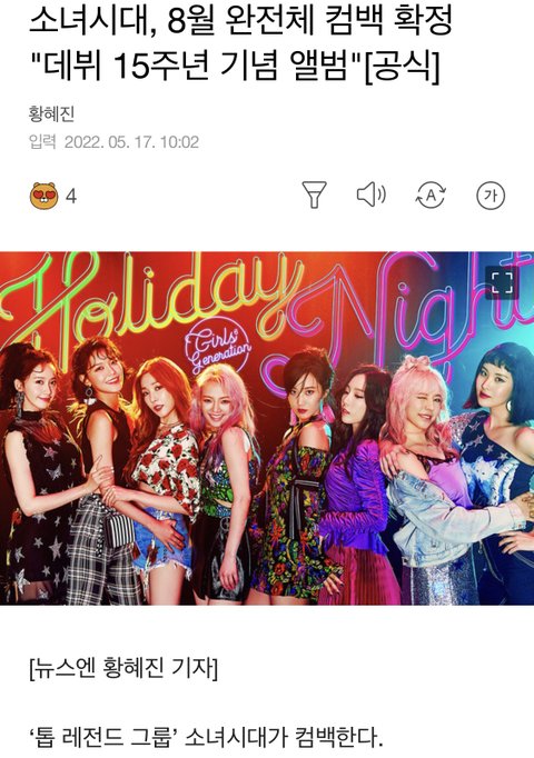 2세대들 돌아오는거 넘좋ㅠㅠㅠ 태연의 스포는 틀리지않았네