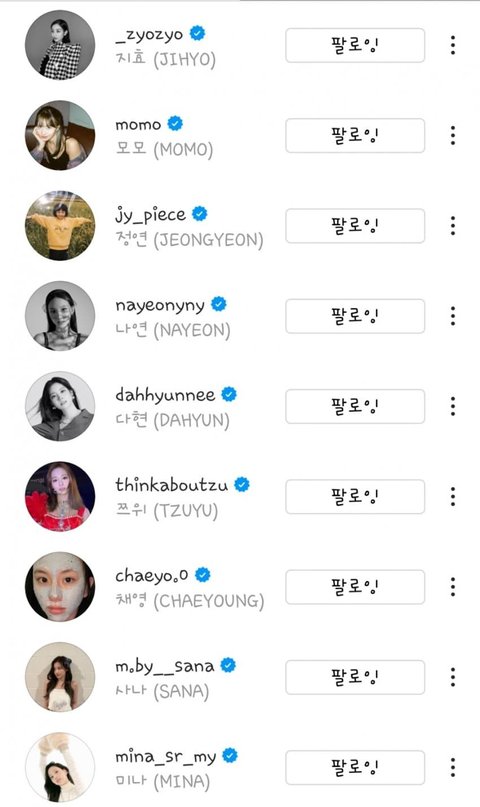 https://instagram.com/nayeonyny?igshid=YmMyMTA2M2Y=나연https://instagram.com/jy_piece?igshid=YmMyMTA2M2Y=정연https://instagram.com/momo?igshid=YmMyMTA2M2Y=모모https://instagram.com/m.by__sana?igshid=YmMyMTA2M2Y=사나https://instagram.com/_zyozyo?igshid=YmMyMTA2M2Y=지효https://instagram.com/mina_sr_my?igshid=YmMyMTA2M2Y=미나https://instagram.com/dahhyunnee?igshid=YmMyMTA2M2Y=다현https://instagram.com/chaeyo.0?igshid=YmMyMTA2M2Y=채영https://instagram.com/thinkaboutzu?igshid=YmMyMTA2M2Y=쯔위