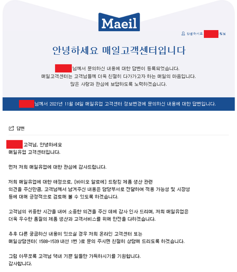 매일유업에 제품 맛잇다고 파생상품 내달라고 메일 보냈는데ㄹㅇ 내줬어