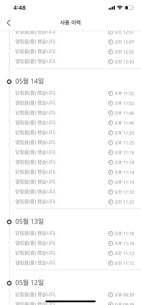 5월 14일 오전 11시 22분 출근을 합니다. 그리고 오후 11시 14분 퇴근을하고 집을 돌아옵니다.
