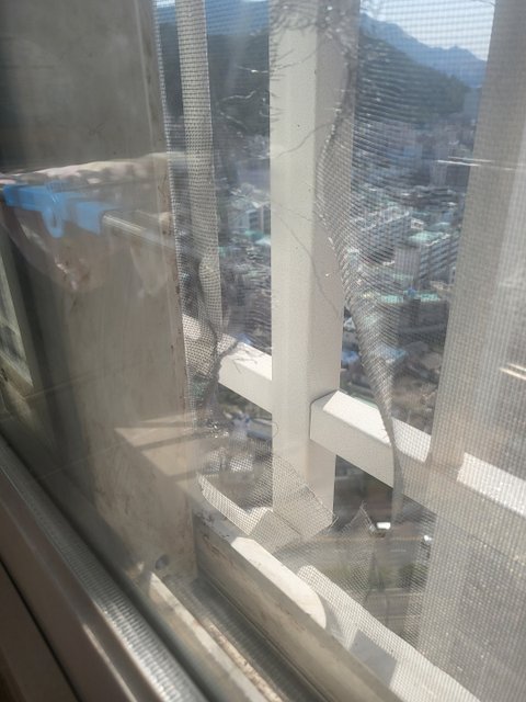 다용도실 창문 사진입니다. 저 정도로만 살짝 열어놨었습니다...
