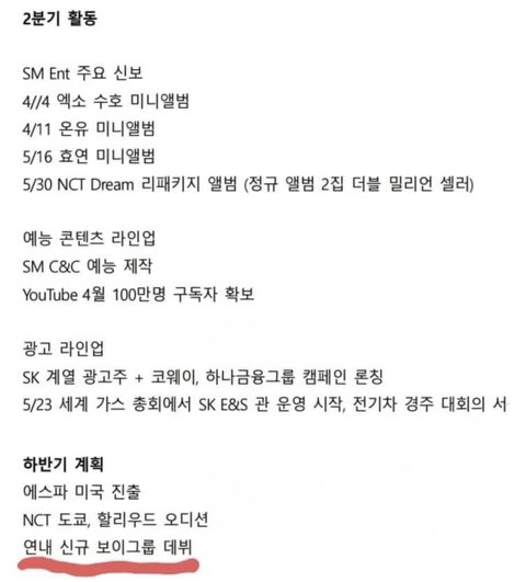 하반기 데뷔 예정인 sm 신인 보이그룹