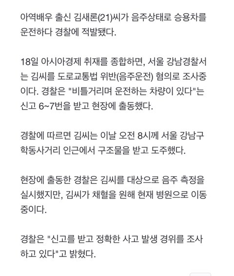 김새론 음주운전하고 튀었다는데?