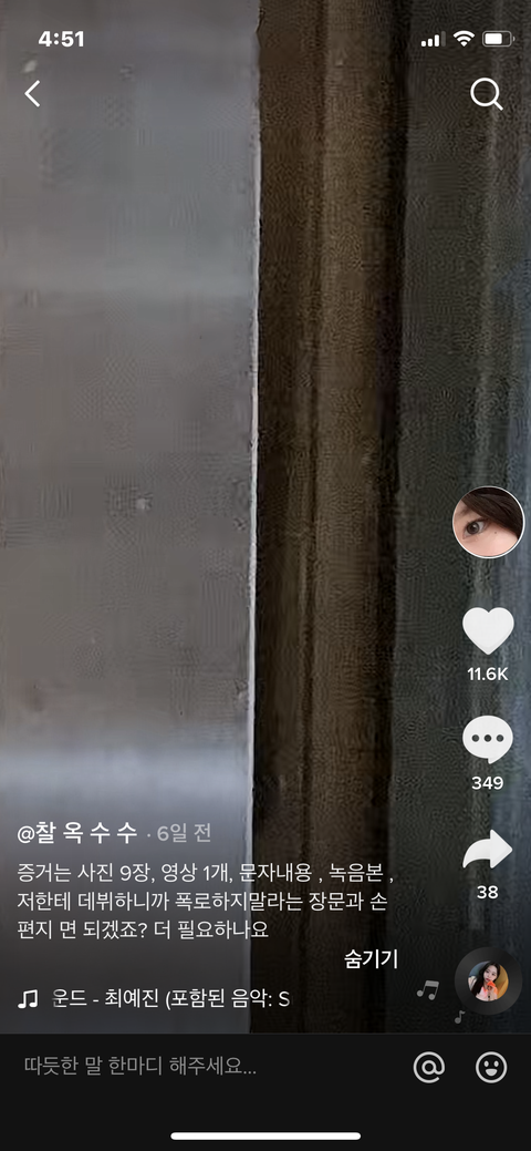 다른 사람 말들 들어보면 5월 초에도 ㅎㅇㅊ 폭로 한다고 영상 올라왔다가 지워졌다고 했고 이번에도 지워짐. 11시에 폭로하겠다고 했는데 그건 시간끄는거였고 11시 되기 몇분전에 영상 다 내림. 근데 조회수랑 하트 수 아까워서 지우진 않고 비공처리 한거같음ㅋㅋ 왠지 주작삘 나서 영상들 다 캡쳐해놓고 팔로우해놨는데ㅋㅋ 그래도 믿고있었는데 구라일줄은..ㅋㅋ