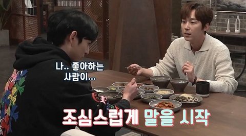 남주(김영대)가 친한 형(윤종훈)에게 여주를 좋아한다는 얘기를 하는 씬임
