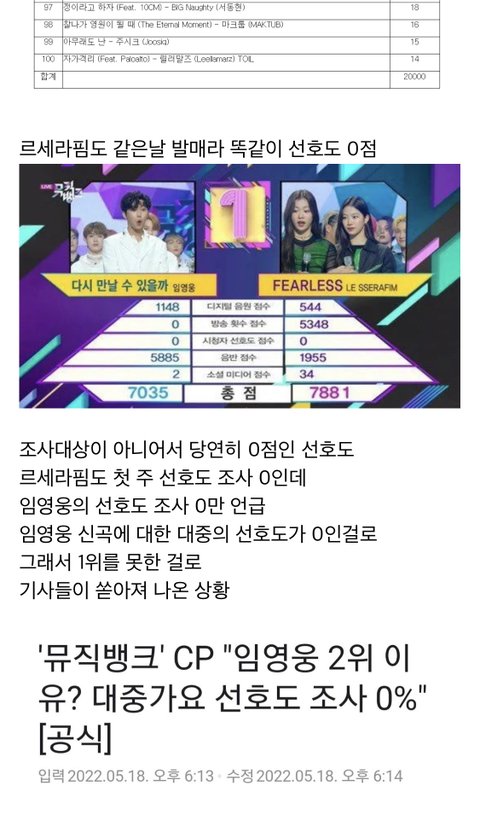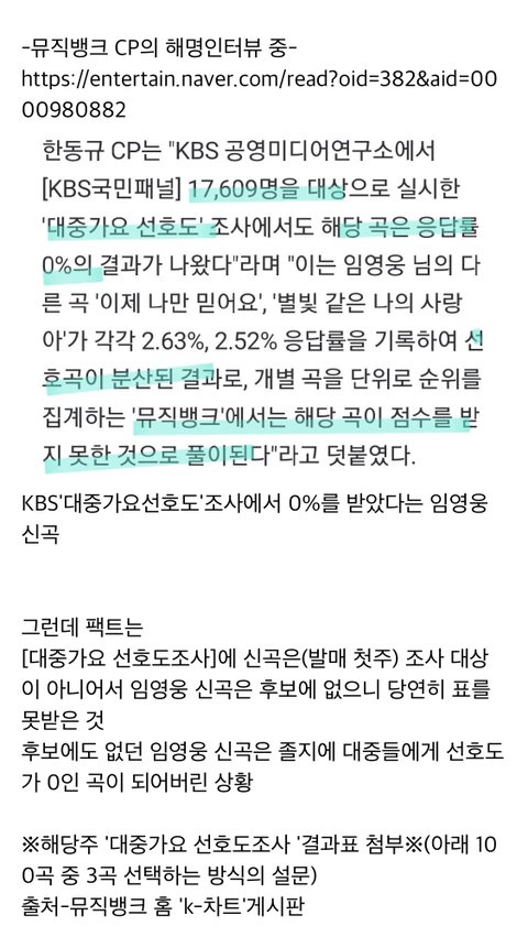 국민패널 17,609명에게 선호도 0%를 받았다는 임영웅 신곡(팩트확인)