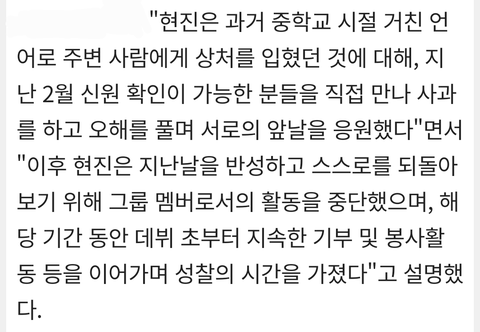 기부나 자기성찰을 하고 다음 앨범쯤 복귀하길바람