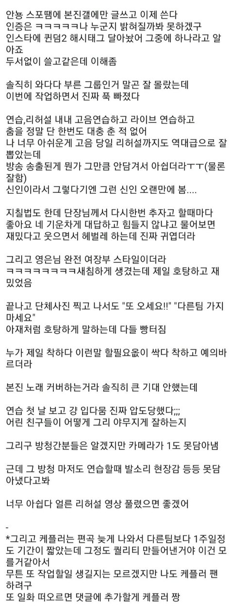 [ 케플러와 같이 퀸덤에서 더보이즈 무대를 같이 한 어느 댄서님의 후기 ]