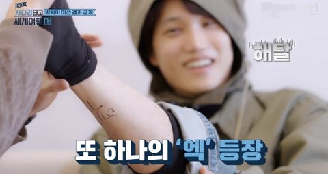 맨살에 위 아 원 엑 소 한 글자씩 쓰기