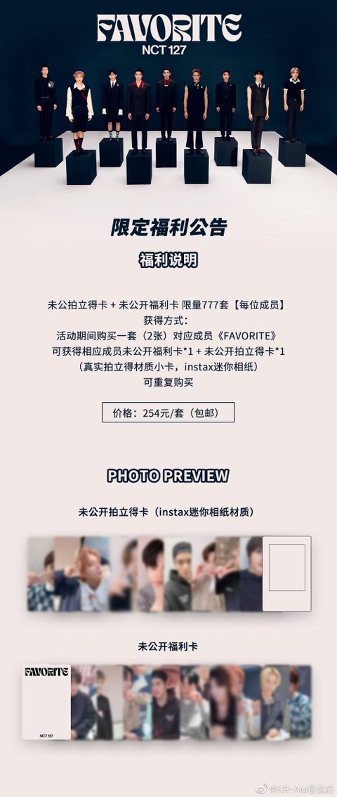 페이보릿을 아직도,,... Favorite 앨범 한 세트(2장) 구매 시 해당 멤버의 포카 (미공포) 한 장 + 미공개 폴라로이드 한 장 증정 (리얼 폴라로이드 소재 미니 카드, 인스탁스 미니 인화지)