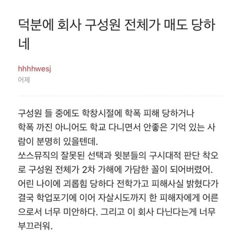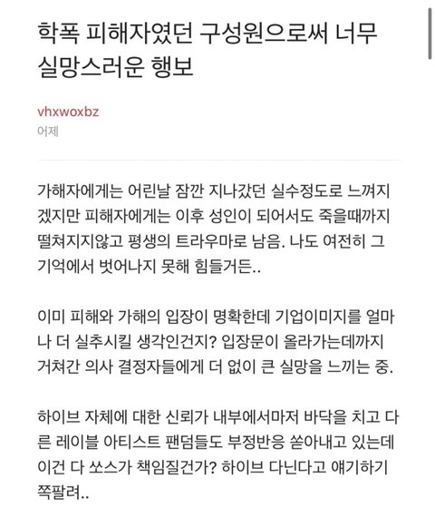 블라인드에 올라온 하이브 직원들 글이래...