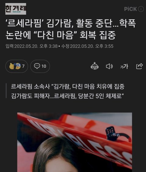 르세라핌 김가람 다친마음 회복집중ㅇㅈㄹ
