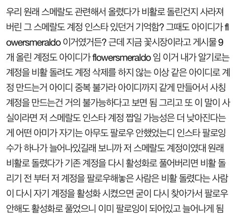 스메랄도 계정 대해서 글 쓴 방울이 있었는데