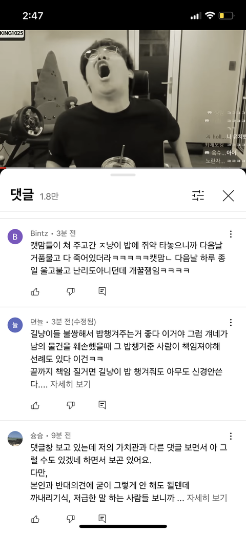 고양이 학대 사건 뜬게 얼만데 저런 댓글 달릴걸 몰랐을까 싶음 구독자들이 저렇게 학대 합리화 하든말든 지 알 바 아니라고 생각하고 올렸을까 싶어서 못보겠더라